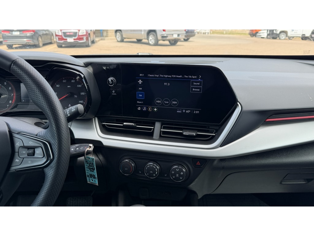 The vehicle warns of approaching vehicles with Cross-Traffic Alert. This vehicle is pure luxury with a heated steering wheel. Never get into a cold vehicle again with the remote start feature on this 2024 Chevrolet Trax . The vehicle's Lane Departure Warning helps keep you in your lane. The Chevrolet Trax stays safely in its lane with Lane Keep Assist. The vehicle features a hands-free Bluetooth phone system. Protect this unit from unwanted accidents with a cutting edge backup camera system. Keep safely connected while in this 2024 Chevrolet Trax with OnStar. You may enjoy services like Automatic Crash Response, Navigation, Roadside Assistance and Hands-Free Calling. This unit has a 3 Cyl, 1.2L high output engine. This vehicle shines with clean polished lines coated with an elegant white finish. Front wheel drive on the vehicle gives you better traction and better fuel economy. Easily set your speed in the Chevrolet Trax with a state of the art cruise control system. Increase or decrease velocity with the touch of a button.