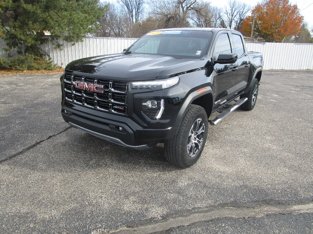 It has four wheel drive capabilities. This small pickup comes equipped with Android Auto for seamless smartphone integration on the road. This GMC Canyon offers Apple CarPlay for seamless connectivity. This 2023 GMC Canyon keeps you comfortable with Auto Climate. This small pickup has an automatic transmission. Protect the vehicle from unwanted accidents with a cutting edge backup camera system. This GMC Canyon has an elegant black exterior finish. Maintaining a stable interior temperature in this small pickup is easy with the climate control system. The GMC Canyon features cruise control for long trips. Electronic Stability Control is one of many advanced safety features on this vehicle. This model has a 4 Cyl, 2.7L high output engine. This unit is equipped with a gasoline engine. Bluetooth technology is built into this model, keeping your hands on the steering wheel and your focus on the road. Keep your hands warm all winter with a heated steering wheel in this 2023 GMC Canyon . This GMC Canyon's Lane Departure Warning keeps you safe by alerting you when you drift from your lane. Lane Keep Assist in the GMC Canyon helps maintain safe driving by gently steering to stay within the lane. The leather seats in this vehicle are a must for buyers looking for comfort, durability, and style. With the adjustable lumbar support in this small pickup your back will love you. The installed navigation system will keep you on the right path. An off-road package is equipped on the GMC Canyon. Start it from inside with remote start. Zip through town. Park easily, but still have the ability to haul items and head out into the backcountry.