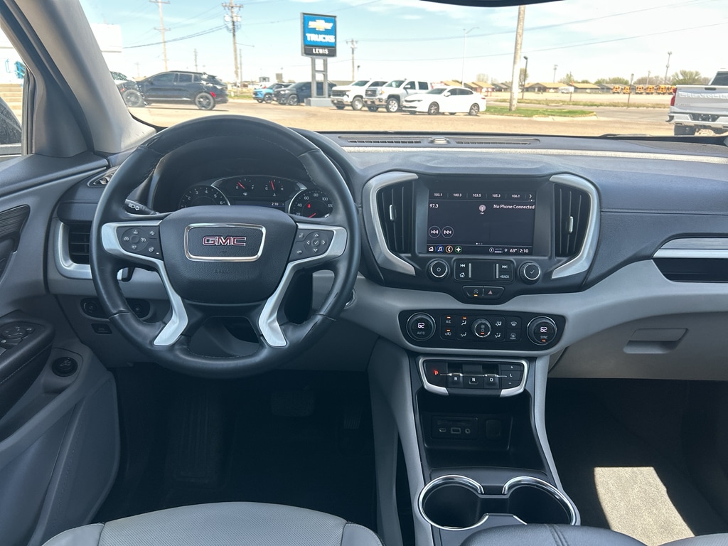 This vehicle stays safely in its lane with Lane Keep Assist. This unit's Lane Departure Warning helps keep you in your lane. Keep your hands warm all winter with a heated steering wheel in this mid-size suv . Protect this mid-size suv from unwanted accidents with a cutting edge backup camera system. This GMC Terrain features a hands-free Bluetooth phone system. This unit offers Automatic Climate Control for personalized comfort. The leather seats in this GMC Terrain are a must for buyers looking for comfort, durability, and style. Never get into a cold vehicle again with the remote start feature on it. This GMC Terrain is painted with a sleek and sophisticated black color. Load groceries and much more with ease into the GMC Terrain thanks to the power liftgate. It has a 4 Cyl, 1.5L high output engine. Quickly unlock this mid-size suv with keyless entry. This model is front wheel drive.