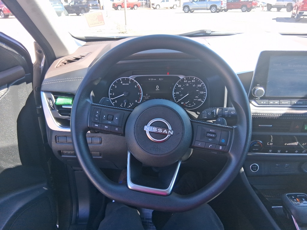 The rear parking assist technology on this vehicle will put you at ease when reversing. The system alerts you as you get closer to an obstruction. This model offers Apple CarPlay for seamless connectivity. Protect this model from unwanted accidents with a cutting edge backup camera system. Never get into a cold vehicle again with the remote start feature on this 2023 Nissan Rogue . This vehicle keeps you comfortable with Auto Climate. Bluetooth technology is built into this unit, keeping your hands on the steering wheel and your focus on the road. This model offers Android Auto for seamless smartphone integration. This model is front wheel drive. This Nissan Rogue emanates grace with its stylish gray exterior. The Nissan Rogue has a 3 Cyl, 1.5L high output engine. Set the temperature exactly where you are most comfortable in this unit. The fan speed and temperature will automatically adjust to maintain your preferred zone climate.