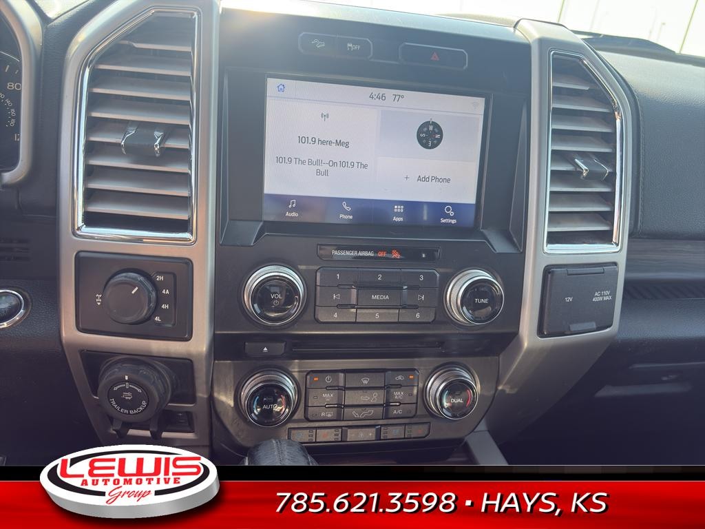 Lariat Chrome Appearance Package: Single-Tip Chrome Exhaust; Chrome Angular Step Bars; Chrome Door and Tailgate Handles with Body-Color Bezel; Chrome 3-Bar Style Grille with Chrome Surround; Chrome Skull Caps on Exterior Mirrors. Equipment Group 502A Luxury: Sony Single CD Radio with HD and SiriusXM Satellite; Auto High Beam with Rain-Sensing Windshield Wipers; Leather-Trimmed Bucket Seats; 2nd Row Heated Seats; Power Tilt/telescoping Steering Column with Memory; Remote Start System with Remote Tailgate Release; LED Side-Mirror Spotlights; Reverse Sensing System; Voice-Activated Navigation; Electronic 6-Speed Automatic Transmission; Power Glass Sideview Mirror with Body-Color Skull Caps; Universal Garage Door Opener; Heated Steering Wheel; Blind Spot Information System (BLIS); Quad Beam LED Headlamps and Taillamps; 110V/400W Outlet. Max Trailer Tow Package: Auxiliary Transmission Oil Cooler; Pro Trailer Backup Assist; Integrated Trailer Brake Controller; Electronic Locking with 3.55 Axle Ratio; Class IV Trailer Hitch Receiver; Upgraded Front Stabilizer Bar. FX4 Off-Road Package: Front and Rear Off-Road Tuned Shock Absorbers; Skid Plates; 4x4 FX4 Off-Road Bodyside Decal; Hill Descent Control. Twin Panel Moonroof. 20 Chrome-Like PVD Wheels. Chrome Angular Step Bars. Leather-Trimmed Bucket Seats. Sony Single CD Radio with HD and SiriusXM Satellite. Electronic Locking with 3.55 Axle Ratio. Pro Trailer Backup Assist. Extended Range 36 Gallon Fuel Tank. Tailgate Step with Tailgate Lift Assist. Integrated Trailer Brake Controller. Reverse Sensing System. 110V/400W Outlet. LED Side-Mirror Spotlights. Skid Plates. Voice-Activated Navigation. **Equipment listed is based on original vehicle build and subject to change. Please confirm the accuracy of the included equipment by calling the dealer prior to purchase.**
