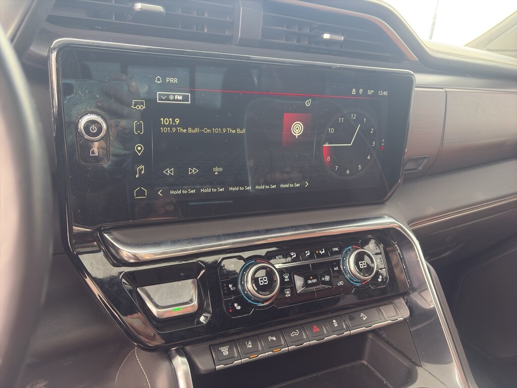 It features a high end BOSE stereo system. This 2024 GMC Sierra 2500 is equipped with the latest generation of XM/Sirius Radio. The vehicle's Lane Departure Warning helps keep you in your lane. Bluetooth technology is built into this 3/4 ton pickup, keeping your hands on the steering wheel and your focus on the road. This model has auto-adjust speed for safe following. The steering wheel audio controls on this vehicle keep the volume and station within easy reach. An off-road package is equipped on this GMC Sierra. It warns of approaching vehicles with Cross-Traffic Alert. This vehicle offers Apple CarPlay for seamless connectivity. The GMC Sierra comes equipped with Android Auto for seamless smartphone integration on the road. Never get into a cold vehicle again with the remote start feature on this unit. The leather seats in the GMC Sierra are a must for buyers looking for comfort, durability, and style.