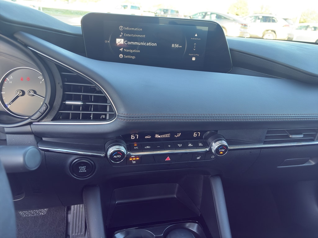 This 2025 Mazda Mazda3 offers Automatic Climate Control for personalized comfort. This Mazda Mazda3 features a hands-free Bluetooth phone system. Lane Keep Assist in this 2025 Mazda Mazda3 helps maintain safe driving by gently steering to stay within the lane. This vehicle offers Android Auto for seamless smartphone integration. See what's behind you with the back up camera on this model. The leather seats in this 2025 Mazda Mazda3 are a must for buyers looking for comfort, durability, and style. Start this small car from inside with remote start. Apple CarPlay: Seamless smartphone integration for this unit - stay connected and entertained on the go! This unit's blind spot monitor enhances safety. This Mazda Mazda3 has a 4 Cyl, 2.5L high output engine. Front wheel drive on it gives you better traction and better fuel economy. Quickly unlock it with keyless entry. Set the temperature exactly where you are most comfortable in the vehicle. The fan speed and temperature will automatically adjust to maintain your preferred zone climate.