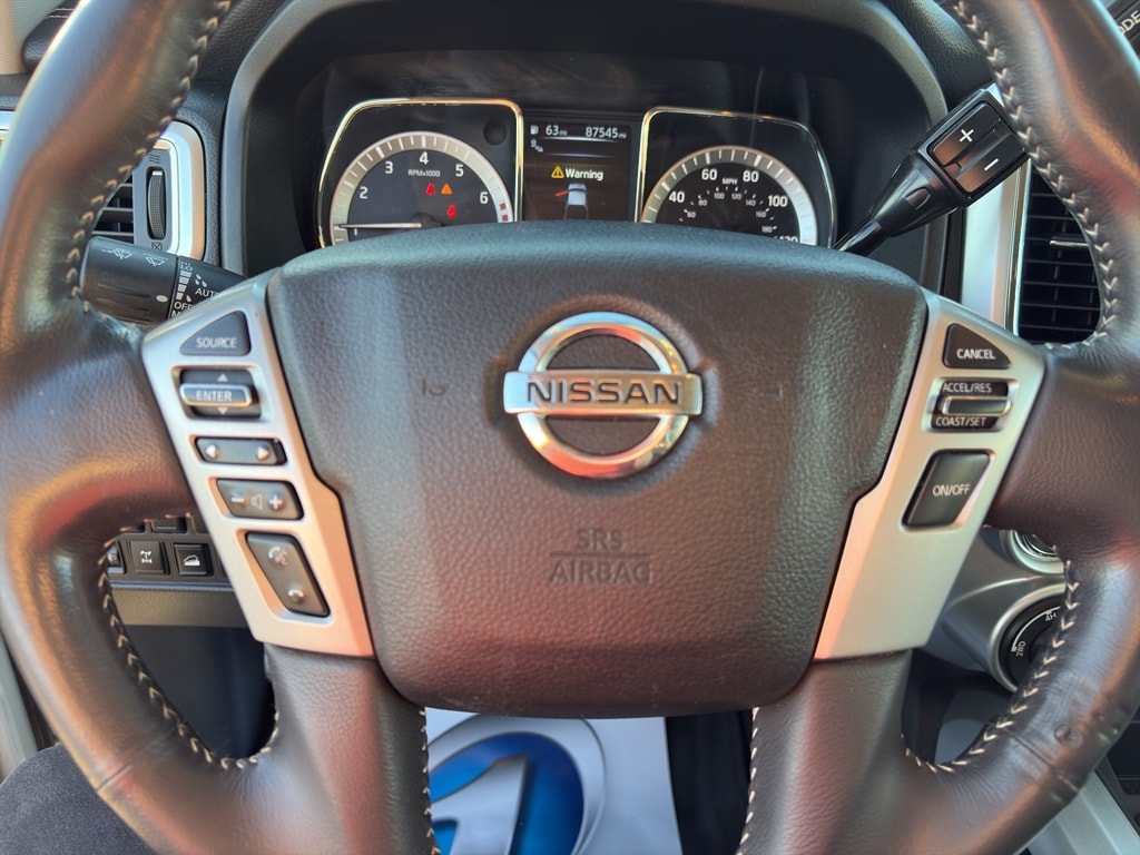 Bluetooth technology is built into the Nissan Titan, keeping your hands on the steering wheel and your focus on the road. The rear parking assist technology on the Nissan Titan will put you at ease when reversing. The system alerts you as you get closer to an obstruction. This 2017 Nissan Titan offers Automatic Climate Control for personalized comfort. Protect this 1/2 ton pickup from unwanted accidents with a cutting edge backup camera system. This unit is equipped with the latest generation of XM/Sirius Radio. The installed navigation system will keep you on the right path. When you encounter slick or muddy roads, you can engage the four wheel drive on this model and drive with confidence. Set the temperature exactly where you are most comfortable in it. The fan speed and temperature will automatically adjust to maintain your preferred zone climate. The vehicle has a V8, 5.6L high output engine.