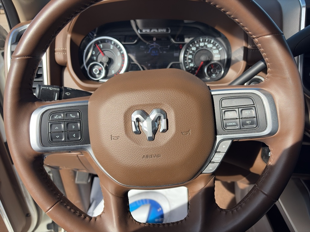 This model keeps you comfortable with Auto Climate. This vehicle offers Android Auto for seamless smartphone integration. The vehicle features a hands-free Bluetooth phone system. Never get into a cold vehicle again with the remote start feature on this Ram 2500. The vehicle is pure luxury with a heated steering wheel. The rear parking assist technology on this unit will put you at ease when reversing. The system alerts you as you get closer to an obstruction. Apple CarPlay: Seamless smartphone integration for this model - stay connected and entertained on the go! The leather seats in the vehicle are a must for buyers looking for comfort, durability, and style. Protect this 3/4 ton pickup from unwanted accidents with a cutting edge backup camera system. Maintaining a stable interior temperature in this 3/4 ton pickup is easy with the climate control system. Greater towing safety becomes standard with the installed trailer brake.