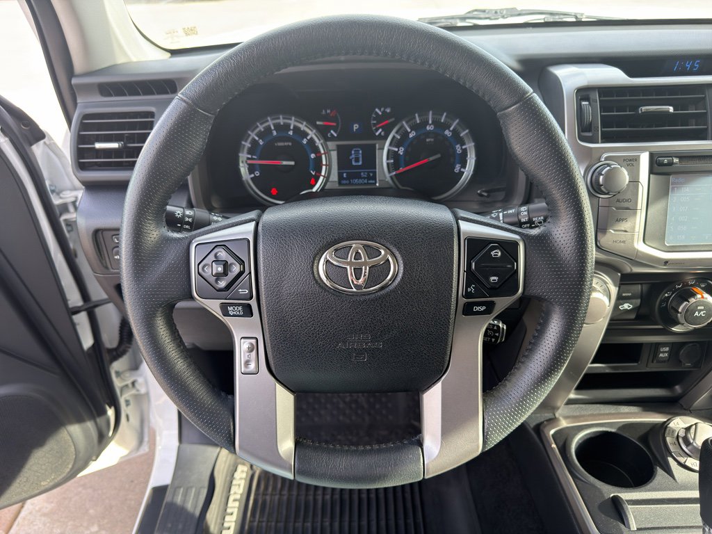 You'll never again be lost in a crowded city or a country region with the navigation system on the vehicle. The leather seats are soft and supportive on it. Protect this 2019 Toyota 4Runner from unwanted accidents with a cutting edge backup camera system. This 2019 Toyota 4Runner features a hands-free Bluetooth phone system. This model has a V6, 4.0L high output engine. This 2019 Toyota 4Runner embodies class and sophistication with its refined white exterior. This Toyota 4Runner has four wheel drive capabilities. The fog lights cut through the weather so you can see what's ahead. This mid-size suv has heated side mirrors to keep your vision clear in winter weather. This 2019 Toyota 4Runner is equipped with a gasoline engine. The Electronic Stability Control will keep you on your intended path. The high efficiency automatic transmission shifts smoothly and allows you to relax while driving. Easily set your speed in this mid-size suv with a state of the art cruise control system. Increase or decrease velocity with the touch of a button.
